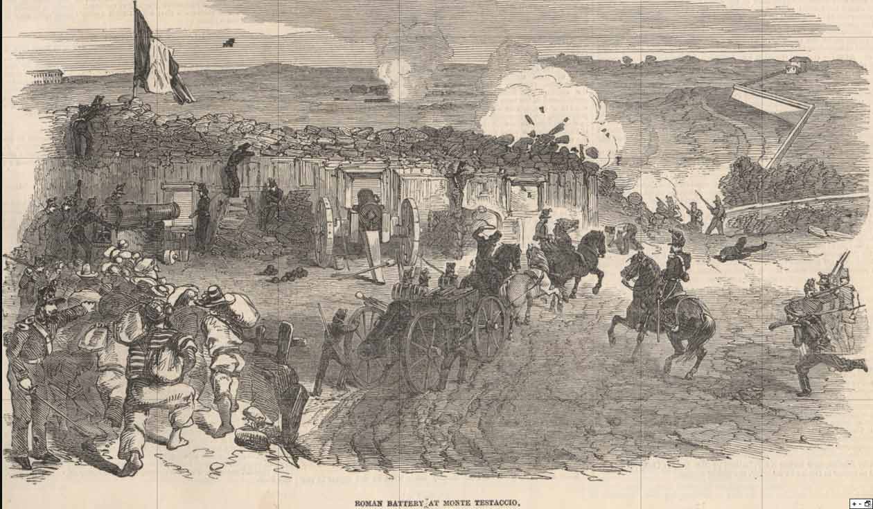 My own personal coda to the Spencer/Rome/Garibaldi story is that I spend part of the year in Testaccio, whose Monte dei Cocci is not only part of my academic landscape (as a classicist, most of my work draws on Rome and its topography) but was also the site of one of the Roman batteries during that bloody conflict in 1849. When I look homewards from the Gianicolo passeggiata, I am also gazing across the centuries to a dialogic point in a conflict which had significant ramifications for the brand of nationalism that still, something over a century later, coloured my childhood in Dublin.